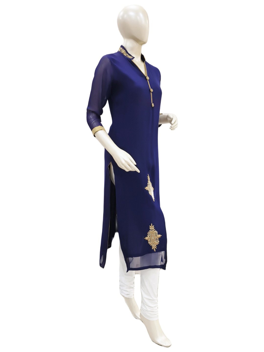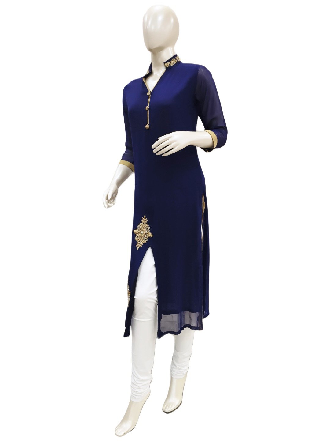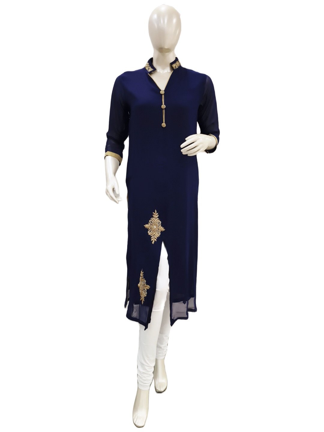 JASVI COLLECTIONS : NAVY BLUE KURTA WITH FRONT SLIT